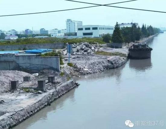 追溯倾倒在江苏两地的垃圾来源,当事人均提及了一个码头的名字——上海惠宾码头。该码头在地图上并未标识,重案组37号探员费尽周折才在上海嘉定区浏翔公路蕰藻浜桥找到它。码头依河而建,一面靠河,三面都是水泥围墙,占地和一个足球场相当。现场大门紧锁,门口没有任何标识,码头上堆有少量的建筑垃圾,岸边还有一艘货船停靠。