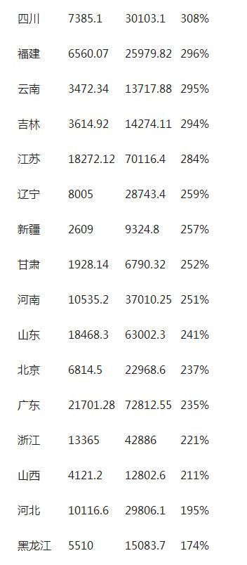 统计数据显示,2005年,我国国内生产总值182321亿元,2015年达到了676708亿元,十年间增长了271%。这其中有19个省份高于平均增速,其中15个省份的增速高于300%,主要集中在中西部地区。低于平均增速的有12个省份,主要是在沿海发达地区和华北、东北地区。