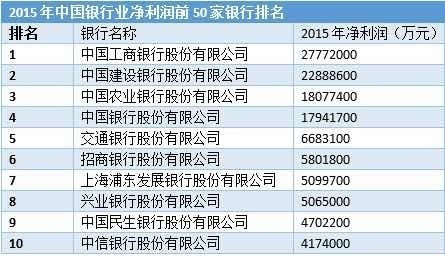 2、2015年中国赚钱最多的银行TOP 10