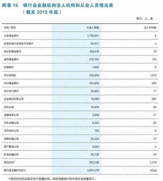 近期,银监会发布《中国银行业监督管理委员会2015年报》,数据显示:截至2015年底,我国银行业金融机构共有法人机构4,262家,从业人员380万人。