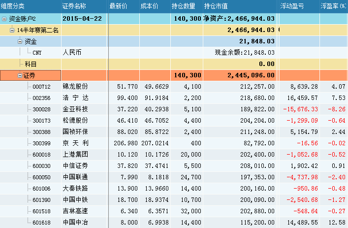 另一名选手股光发则通过自己在小盘股的坚守赢得了丰厚的收益,同花顺、浩宁达、中国中冶、文峰股份昨日悉数大涨,为选手带来了近10万收益,中国中冶更是强势封板,选手抄底龙头个股的实力可见一斑。又布局了上港集团、中国中铁和大秦铁路等大蓝筹。从操作来看,选手短线操作水准很强悍,对龙头股的超跌反弹做的得心应手,这点对于想做龙头股二波反弹的人是极有借鉴意义的。